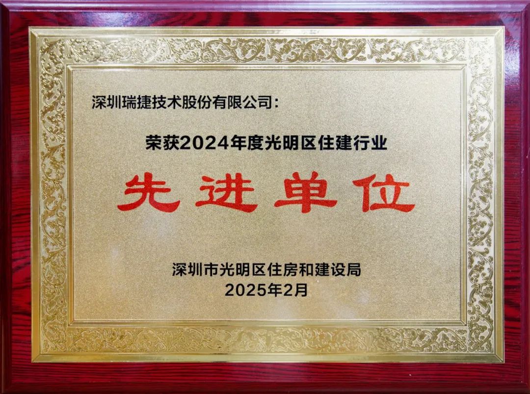 深圳瑞捷获评深圳市光明区住建局“2024年先进单位”