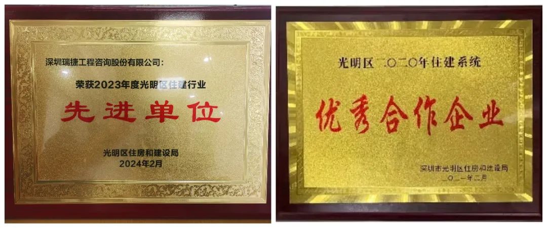 深圳瑞捷获评深圳市光明区住建局“2023年先进单位”、“2020年优秀合作企业”