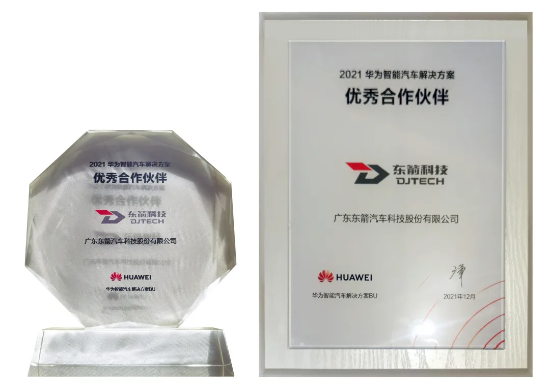 ▲东箭科技荣膺“2021华为智能汽车解决方案优秀合作伙伴”