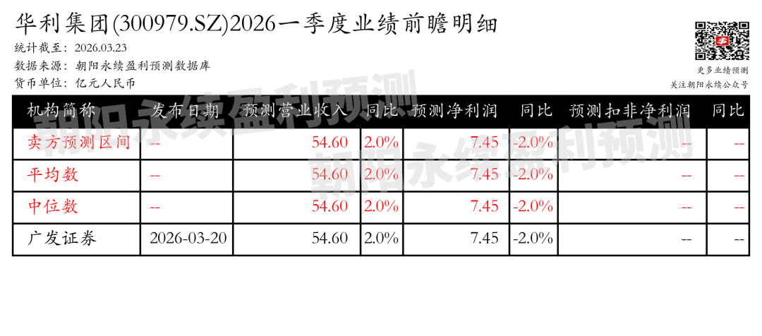 截至2026年03月23日,根据朝阳永续季度业绩前瞻数据: