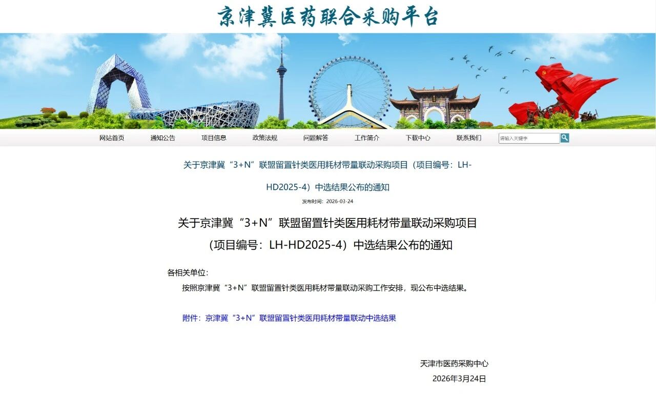 近日,中红医疗旗下一次性使用静脉留置针产品,中标京津冀“3+N”联盟留置针类医用耗材带量联动采购项目。