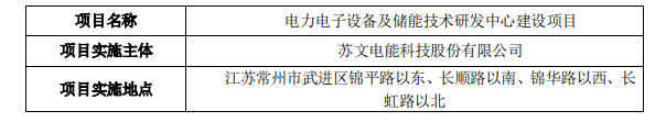 据介绍电力电子设备及储能技术研发中心项目将购置先进的研发、检测和试验设备和软件,引进行业优秀技术人才,建成一个先进的电力电子设备及储能技术研发中心。项目将对新能源储能和电力电子设备等技术进行重点研发,丰富苏文电能新能源储能和电力电子设备领域技术和产品储备,抢占新型电力系统发展带来的工商业用户侧储能发展先机。
