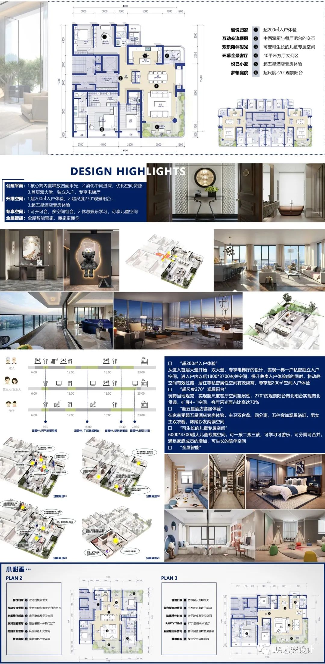 UA尤安设计设计团队与中国电建地产华中区域围绕“未来·全能梦想+”的主题,对郑州地区200平方米户型设计进行六大场景升级,为三代之家提供全方位的使用感提升,优化空间资源,为住户提供首层双大堂、独立入户、专享电梯厅的居住体验;升维住宅空间,提供超200平方米的入户体验、超尺度270°观景阳台以及超五星级的套房体验。