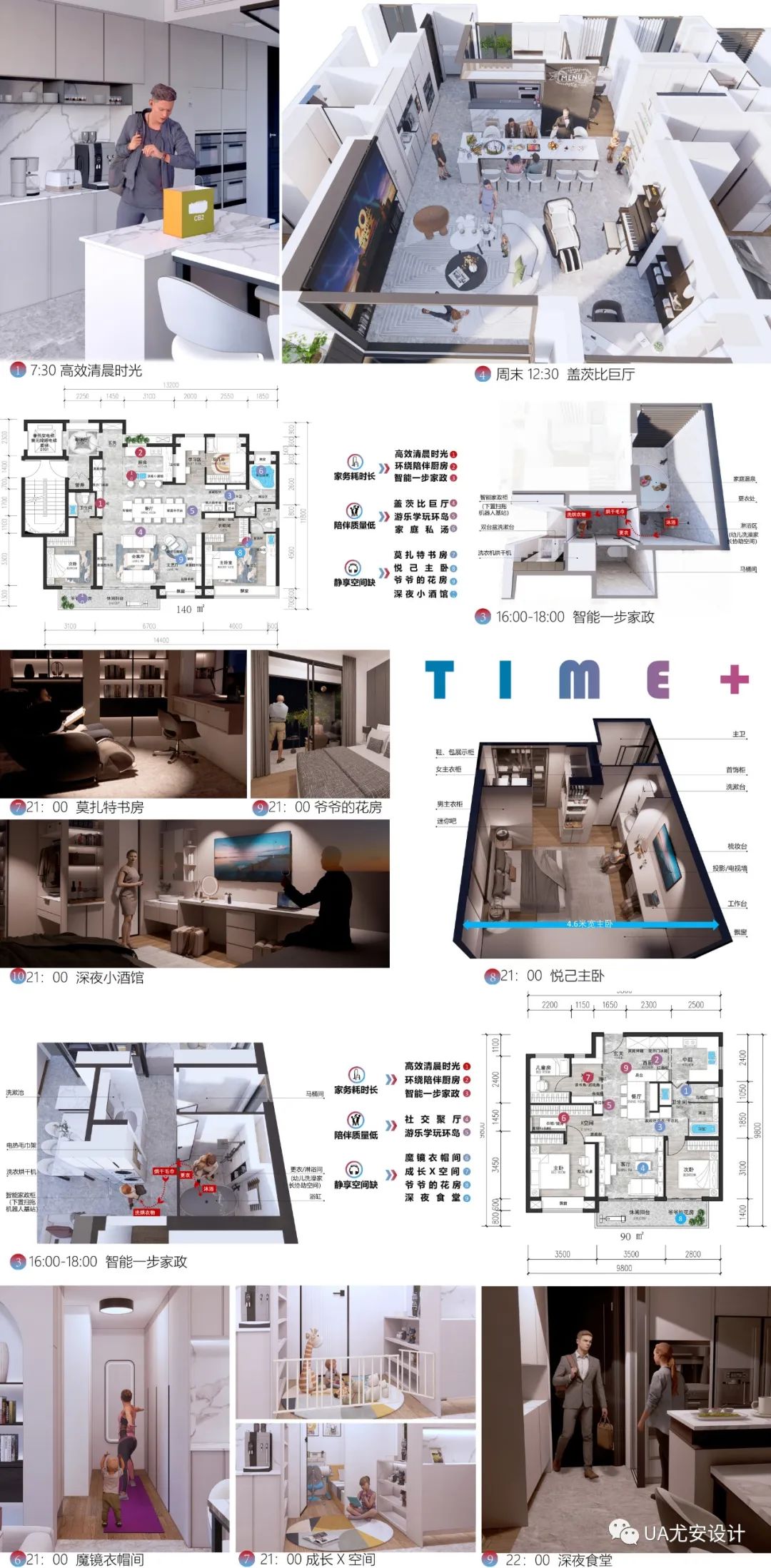 UA尤安设计设计团队与中国电建地产华东区域围绕“TIME+”的设计主题,在90-140平方米的户型设计中,为“城市大多数”家庭客群提供提升陪伴时间、静享时间的长度和质量,压缩或转化家务时间的居住体验,解决新时代的客群痛点。