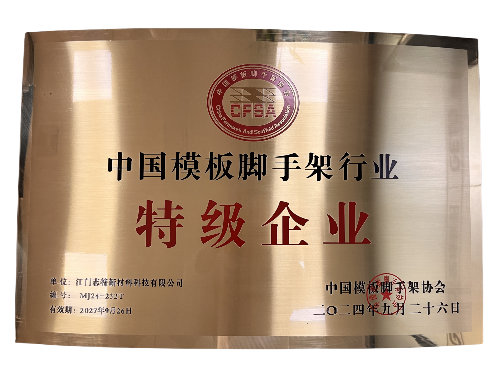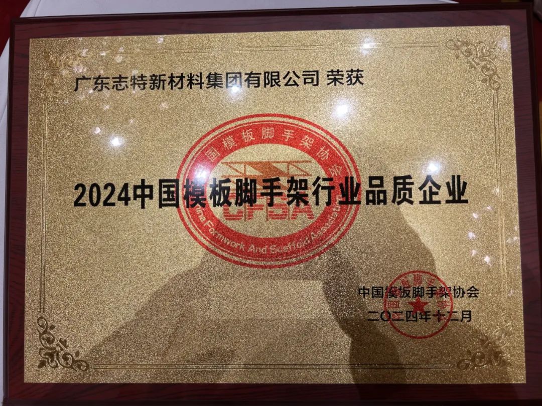 2024年12月,由中国模板脚手架协会主办的2024年中国模板脚手架协会年会在重庆市成功召开。志特新材荣获“2024年中国模板脚手架行业品质企业”荣誉。