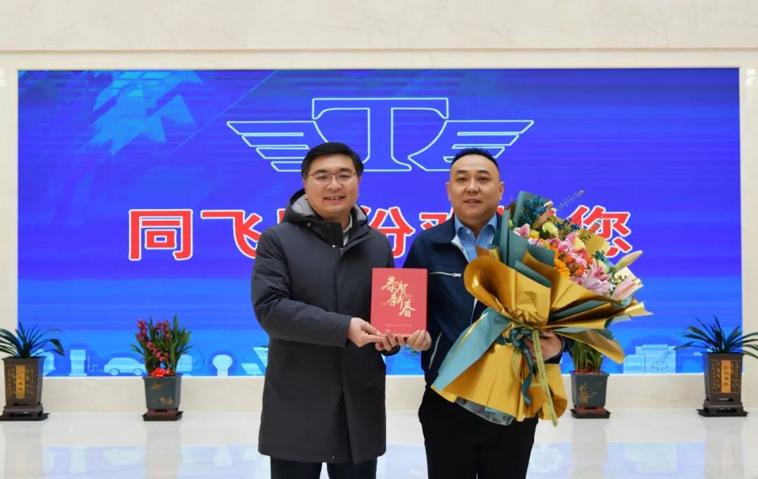 2023年1月19日上午,三河市委常委、常务副市长扈大勇莅临同飞股份,代表中共廊坊市委人才工作领导小组对同飞股份总经理张浩雷先生致以新春的慰问。扈市长与张总亲切交谈,感谢同飞股份2022年以来在全市疫情防控、经济发展、民生保障以及为推动廊坊在京津冀协同发展上走在全省前列等方面作出的重要贡献,并认真询问企业生产经营情况、项目推进情况及当前存在困难,表示市政相关部门将合力为企业排忧解难,助力企业更好发展,请企业坚定发展信心,把握发展机遇,不断开拓进取。张总表示,同飞股份的发展离不开市政各部门长期以来的大力支持,公司将永葆创业激情、勇于创新突破,努力在新的发展机遇下掌握主动、赢得优势,以企业更好更快发展助力三河市经济社会高质量发展。