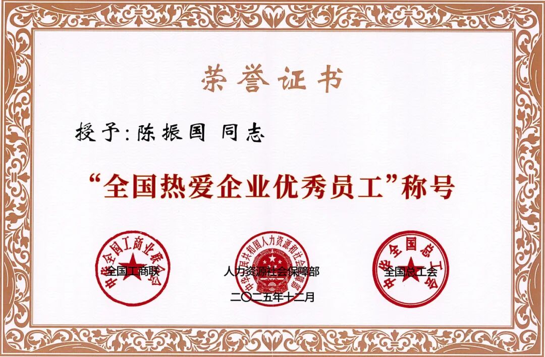 据悉,本次“全国热爱企业优秀员工”评选全国仅32人上榜。这份荣誉既是对陈振国深耕工业温控领域、践行工匠精神的个人认可,更是国家对同飞股份深耕高端精密制造、践行“双爱双评”理念、构建和谐劳动关系的充分肯定,生动彰显了公司“家和文化”的建设成效。