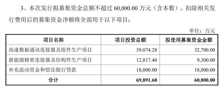 公司表示,本次定增的核心目的是把握本轮算力基建及新能源市场的快速发展机遇,进一步扩大公司高速数据通讯连接器、新能源连接器等核心产品的产能,优化业务收入结构,实现盈利能力与盈利质量的双提升。