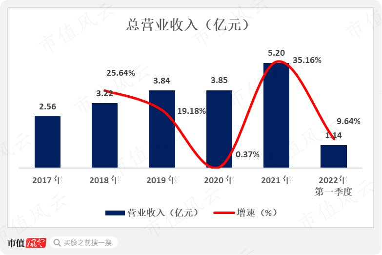 公司最新的年度营收规模超过5亿,同比增长35.16%,今年一季度营收增速有所下降。