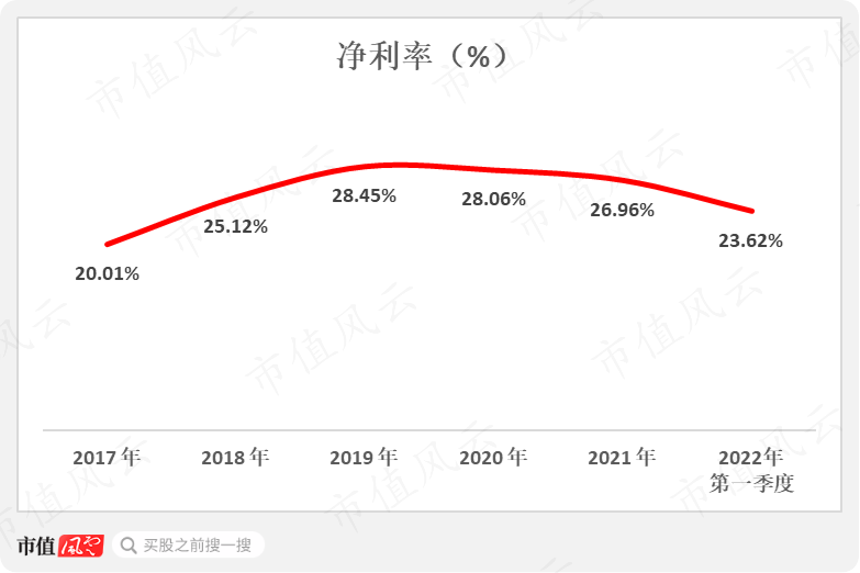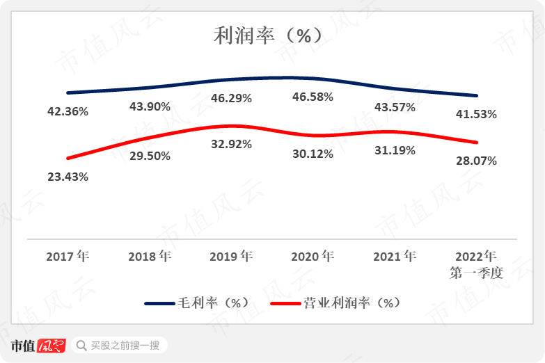 公司整体的毛利率与营业利润率在今年一季度分别约为42%与28%,并且历年情况都比较稳定,没出现较大的波动。