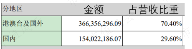公司所有的产品都采用直销形式进行销售,大部分的产品都是销往境外,2021年来自境内的收入为1.5亿,约为总收入的30%。