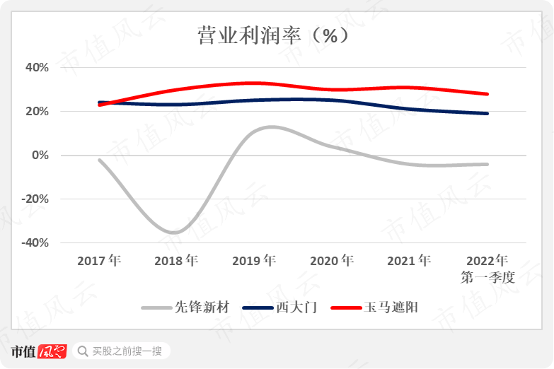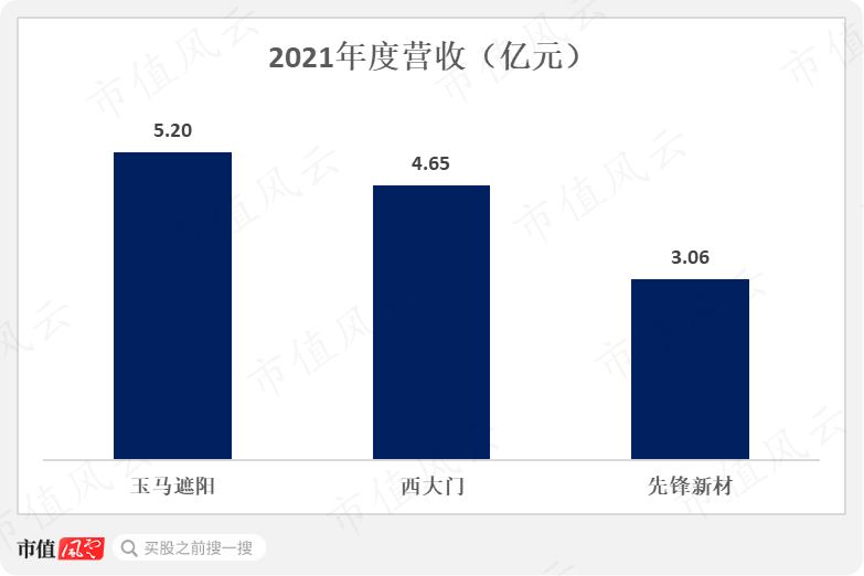 除了玉马遮阳,行业内的其他上市公司还有先锋新材(300163.SZ)和西大门(605155.SH)。玉马遮阳的总营收规模依旧领先其余二位,但大家差距也不大,处于胶着状态。