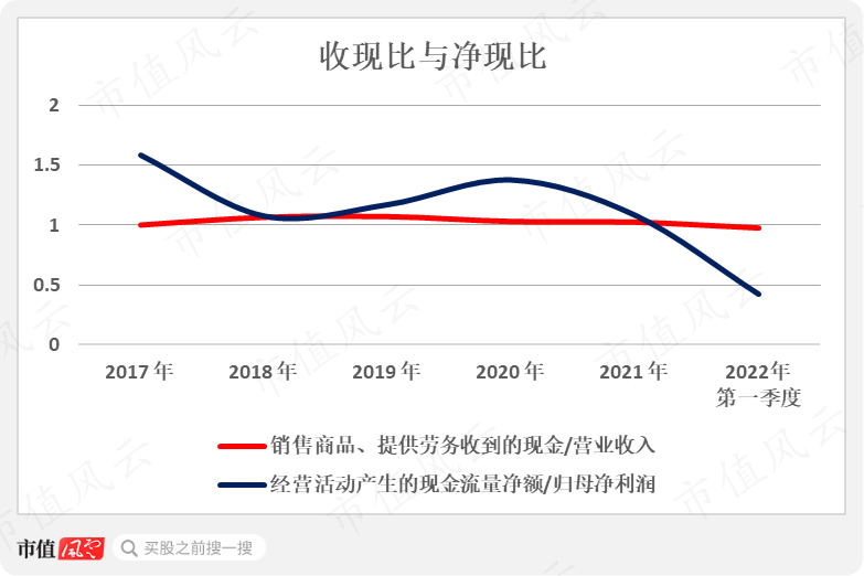 公司不管是销售收入还是净利润,几乎全部转化成了实实在在的现金流入。净现比与收现比在2017年到2021年这五年里每年都大于1。