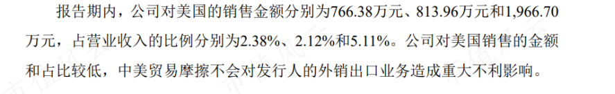 说到这里,就不得不提美国对从中国进口的2000亿美元商品加征关税的措施,很不幸,玉马遮阳“躺枪”了。而幸运的是,公司虽也对美国出口产品,但是收入占比并不多。