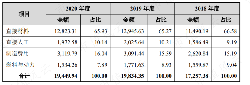 在成本构成中,原材料的份额每年占到成本的60%以上。