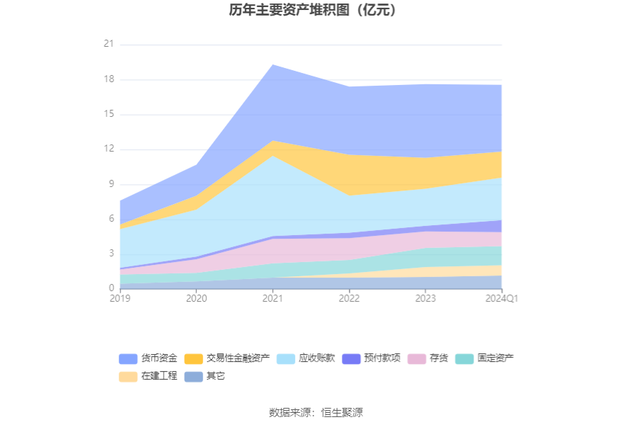 资产重大变化方面,截至2024年一季度末,公司货币资金较上年末减少9.59%,占公司总资产比重下降3.33个百分点;预付款项较上年末增加111.99%,占公司总资产比重上升3.13个百分点;应收账款较上年末增加15.09%,占公司总资产比重上升2.80个百分点;交易性金融资产较上年末减少15.91%,占公司总资产比重下降2.36个百分点。