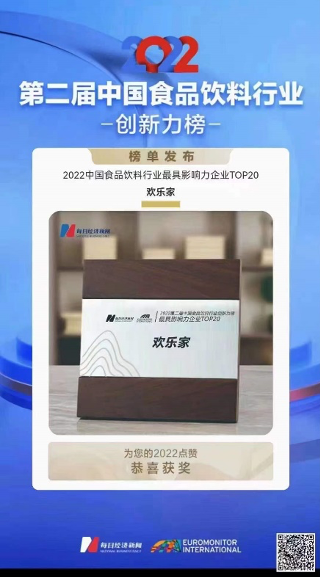近年来,在植物蛋白饮料行业高景气的背景下,欢乐家重点围绕椰子汁饮料不断扩充“椰汁+”的植物基产品矩阵,使厂、商都能具备更好的增长潜力,更获得了权威机构的“点赞”。在不久前举办的第二届中国食品饮料行业创新力榜中,欢乐家就成功入选《2022中国食品饮料行业最具影响力企业TOP20》。