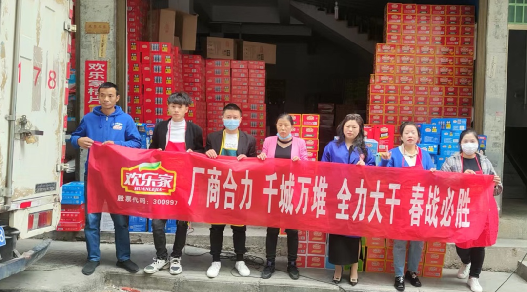 当然,“有备而来”的不仅仅是欢乐家,经销商也积极配合厂家执行集中联合铺市,铆足干劲将欢乐家椰子汁推向终端,誓言以“千城万堆”之势打赢这场攻坚战!从前方反馈的信息来看,欢乐家百箱堆、千箱堆这样的大陈列,成功地激发了所有经销商的热情和干劲,势必源源不断地拉动终端动销。