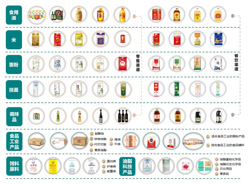 资料显示,金龙鱼目前已形成覆盖高端、中端、大众的综合品牌矩阵,在众多细分市场均保持领先的市场地位。通过不断植入新产品、新品类,核心品牌“金龙鱼”已从单一的食用油品牌发展成为综合性厨房食品品牌,产品类型覆盖食用油、大米、面粉、挂面、调味品等品类。