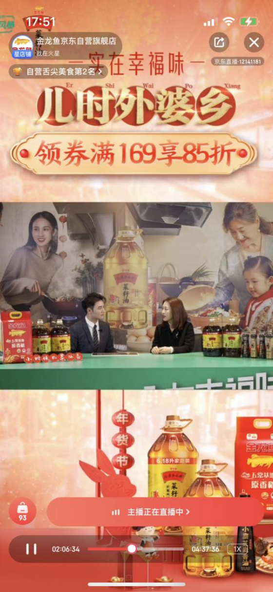 囤实实在在外婆乡,得实实在在小幸福~如今便捷的线上购物引领着产品销售渠道,而“直播带货”更是重要的产品销售&展出渠道之一。12月27日晚8点,金龙鱼京东自营旗舰店直播火热开启,益海嘉里集团消费品渠道事业部执行总监赵红梅女士携手体操奥运冠军邢傲伟、渝菜大厨陈波老师一起现身直播间,通过互动问答、火锅餐券放送、限定联名礼盒、超值优惠等形式,为消费者争取到更多福利,吸引了大量粉丝关注并购买,让年味变得更加触手可及!