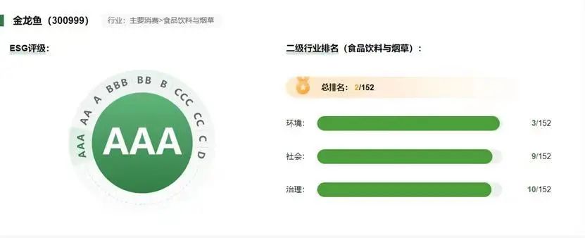 10月,益海嘉里金龙鱼获评国证ESG评级最高等级AAA级