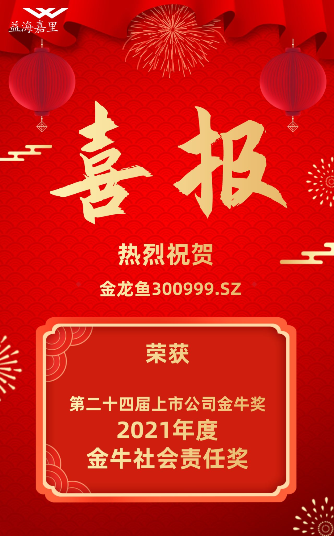 近日,中国证券报第24届上中国上市公司金牛奖获奖名单出炉,益海嘉里金龙鱼斩获“2021年度金牛社会责任奖”。益海嘉里金龙鱼重视企业社会责任,把食品安全和质量放在首位,并通过科技创新将节能减排融入产品生命全周期,构筑企业核心竞争力。同时,益海嘉里金龙鱼积极投身慈善事业,扶贫扶志,助力乡村振兴;坚定履行社会责任,捐资捐物、稳价保供,全力以赴保障民生。