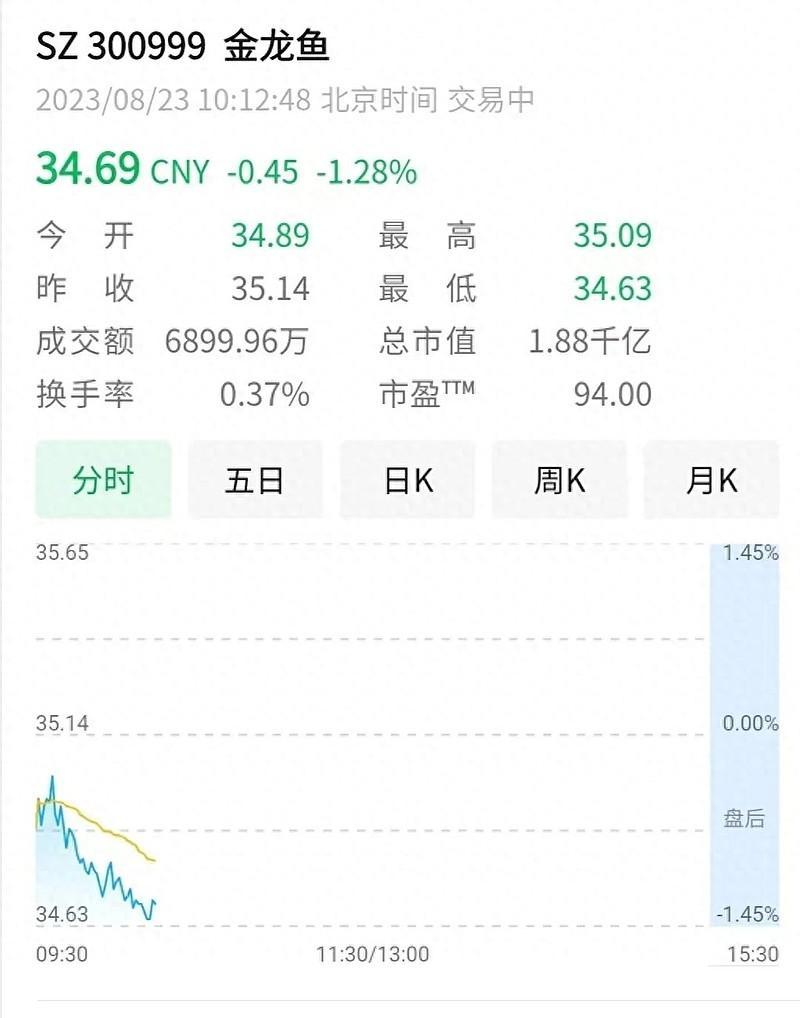 连锁反应还在继续。8月14日,金龙鱼股价跌超10%,创下上市以来的新低,目前股价跌破40元,最新总市值已经不足2000亿元。要知道,两年前登陆创业板后,金龙鱼的市值一度涨至7800亿元的高点,也就是说,市值缩水了超5000亿。