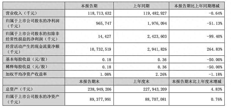 谁能想到,曾经众星捧月的“油茅”金龙鱼,会交出这样一份惨淡的成绩单。8月11日,益海嘉里金龙鱼(以下简称“金龙鱼”)发布2023年半年报,显示报告期内,公司实现营业收入1187.14亿元,同比下跌0.64%;归母净利润为9.66亿元,同比下降51.13%;扣非净利润为0.14亿元,同比大降99.40%。