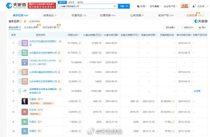 山东鲁花集团有限公司成立于2001年3月,法定代表人为孙东伟,现由山东鲁花生生投资有限公司、山东牡丹花道生投资有限公司、山东福花道生投资有限公司及上述新增股东等共同持股。
