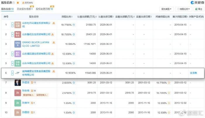 天眼查显示,山东鲁花第一大股东为山东牡丹花道生投资有限公司,持股比例为19.78%,该公司实控人为孙孟全,持股比例100%;第二大股东为山东鲁花生生投资有限公司,实控人为孙东伟,持股比例100%。根据公开资料,孙孟全与孙东伟为父子关系。此外,孙孟全和孙东伟还持有山东鲁花2.83%和2.68%股权。
