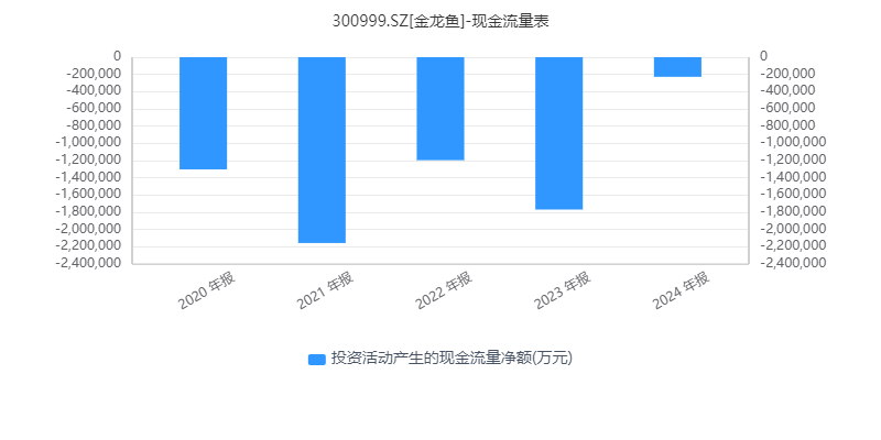 2020年-2024年,金龙鱼投资活动产生的现金流量净额。图片来源:同花顺iFinD