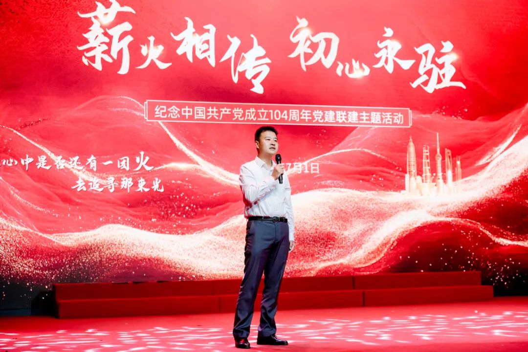 为纪念中国共产党成立104周年,2025年7月1日,益海嘉里金龙鱼党委联合梅奔中心党支部、上海戏曲艺术中心党委、国泰海通证券上海分公司党委、国泰君安期货党委在梅赛德斯-奔驰文化中心音乐俱乐部隆重举办“薪火相传,初心永驻”党建联建活动。