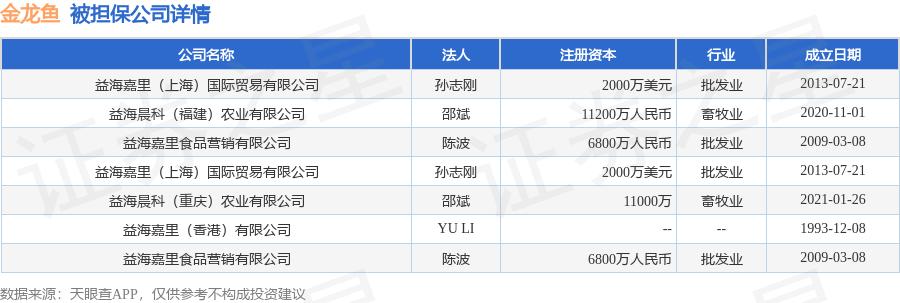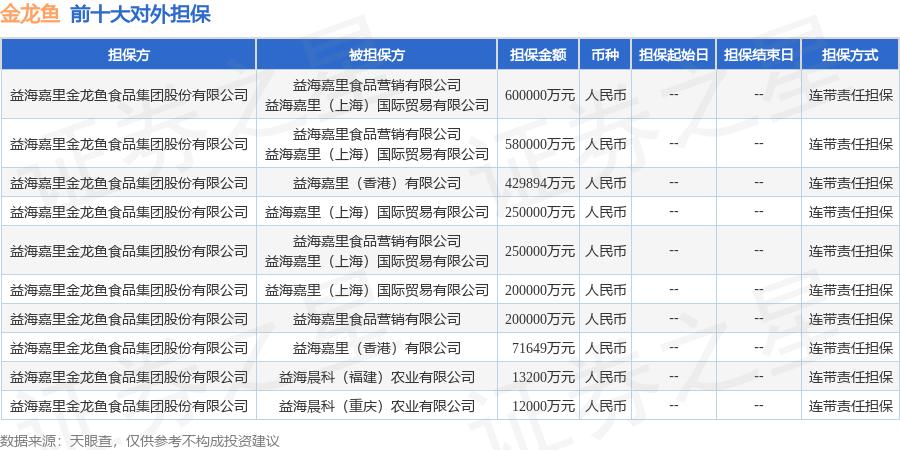 金龙鱼8月12日披露11笔对外担保,被担保公司8家。担保金额排在前十的对外担保明细如下表: