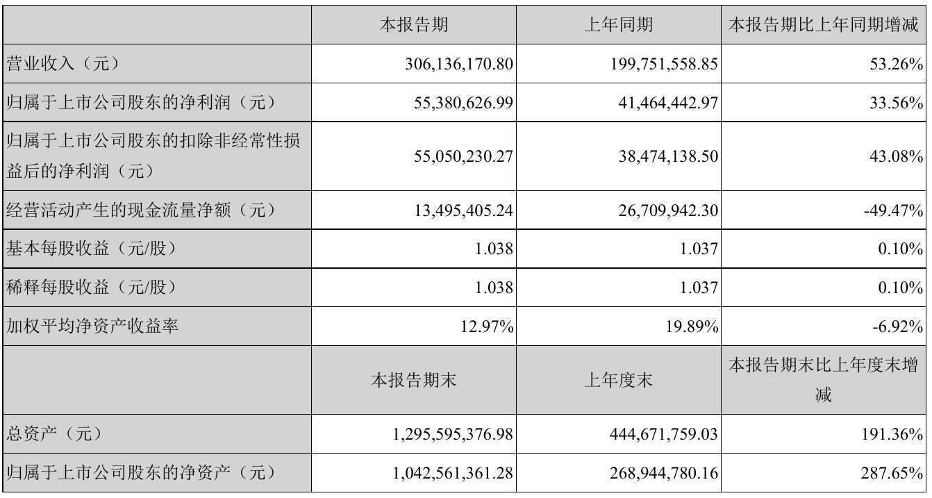 挖贝网8月17日,肇民科技(301000)近日发布2021年半年度报告,报告期内营业收入306,136,170.80元,同比增加53.26%;净利55,380,626.99元,同比净利增加33.56%。