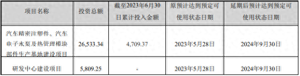 肇民科技IPO募投项目中,最大一笔资金投向为2.65亿元投入汽车精密注塑件、汽车电子水泵及热管理模块部件生产基地项目。这一项目原计划建设期24个月,预计达到可使用状态日期为2023年5月28日。