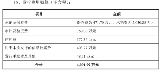 崧盛股份本次上市发行费用为4091.99万元(不含增值税),其中长江证券承销保荐有限公司获得承销及保荐费2502.55万元。