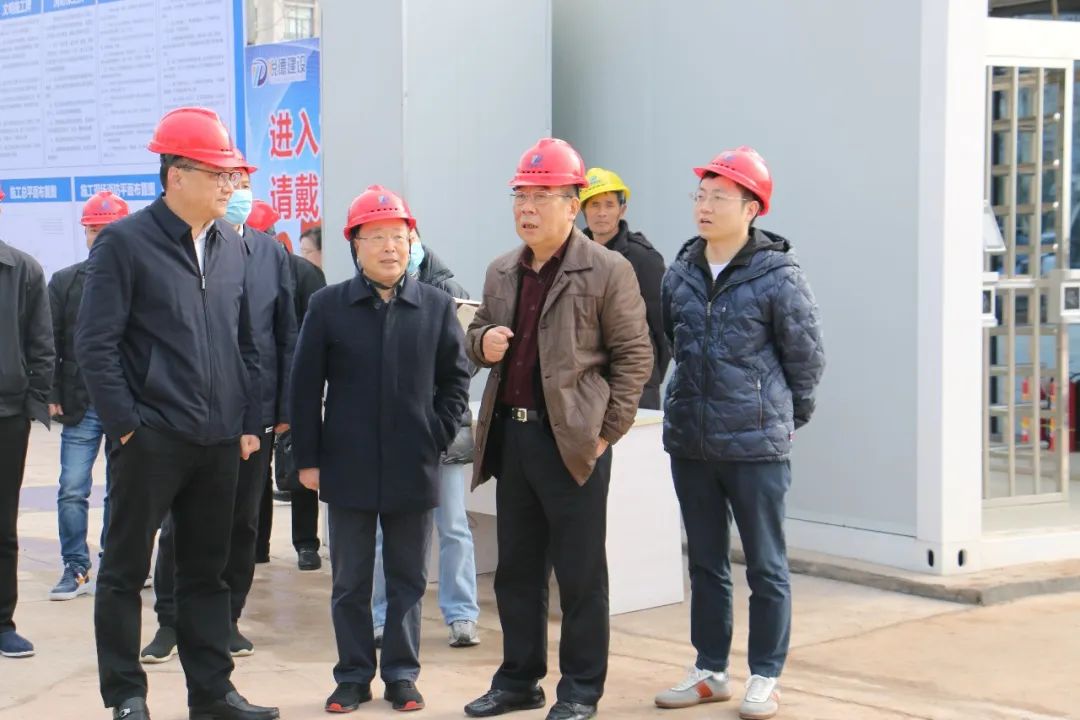 项目施工现场,陆董向各位领导介绍了项目建设背景、项目投资、建设内容及项目进展等具体情况,通过实地检查项目内的安全生产及文明施工情况,宋主席给予了充分肯定。