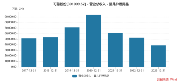 2021年6月,顶着国内成人纸尿裤第一股的光环,可靠股份在深交所敲钟上市,但上市当年,公司即出现营收、净利润双降,分别同比下滑:27.44%和81.43%。证券之星注意到,因口罩业务的销售不具有可持续性,该业务较2020年同期大幅度下降。而从产品端看,受国内婴儿出生率下降、疫情波动、市场竞争日趋激烈等因素影响,公司婴儿护理产品实现营收6.12亿元,同比下降34.81%。