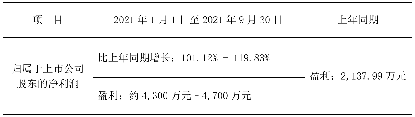 挖贝网10月14日,华立科技(301011)近日发布2021年前三季度业绩预告公告,预计2021年前三季度实现归属于上市公司股东的净利润为4300万元–4700万元,比上年同期增加101.12%–119.83%。