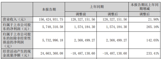 华立科技2023年第一季度报告显示,公司首季实现营业收入1.56亿元,同比增长21.90%;归属于上市公司股东的净利润574.83万元,同比增长265.16%;归属于上市公司股东的扣除非经常性损益的净利润573.30万元,同比增长142.05%;经营活动产生的现金流量净额2466.34万元,上年同期为-1848.71万元。