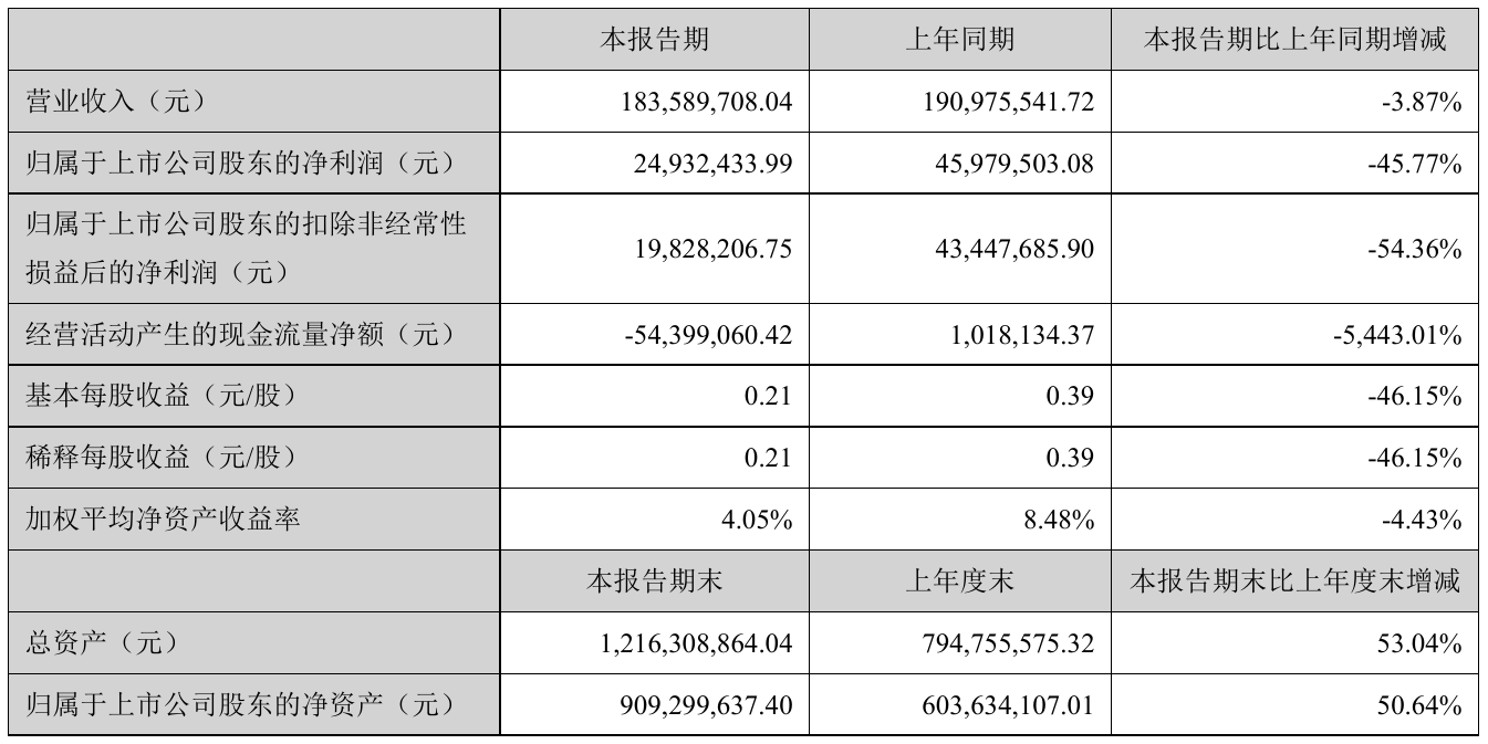 挖贝网8月23日,利和兴(301013)近日发布2021年半年度报告,报告期内营业收入183,589,708.04元,同比减少3.87%;净利24,932,433.99元,同比净利减少45.77%。