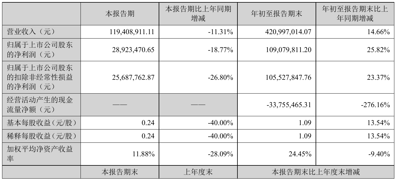 挖贝网10月25日,雷尔伟(301016)近日发布2021年前三季度报告,报告期内营业收入420,997,014.07元,同比增加14.66%;净利109,079,811.20元,同比净利增加25.82%。