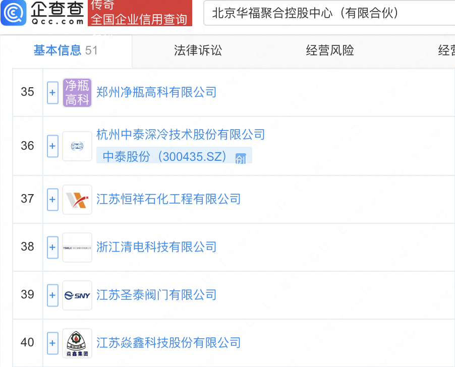 近日,北京华福聚合控股中心(有限合伙)成立,经营范围包含:企业总部管理;企业管理。股权穿透显示,该企业由申菱环境(301018)、中泰股份(300435)等共同出资。