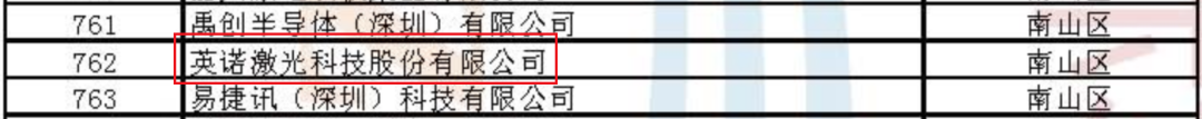 2023年3月15日,深圳市中小企业服务局发布了《关于2022年深圳市专精特新中小企业名单的公示》,英诺激光经过自主申报、各区初审推荐、深圳市中小企业服务局复核等程序,从众多参选企业中脱颖而出,成功入选“2022年深圳市专精特新中小企业名单”,现已完成公示。