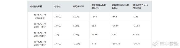 2023年三季报显示,海泰科总营收为1.45亿,归母净利润为-0.01亿元,营收总收入同比增长5.75%,归属净利润同比增长-103.16%。