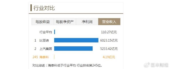 从营业收入方面来看,海泰科低于行业平均行业排名第245位。