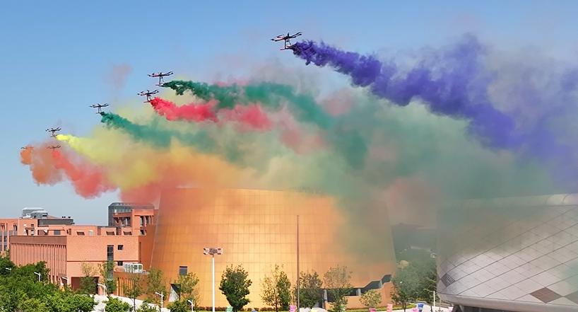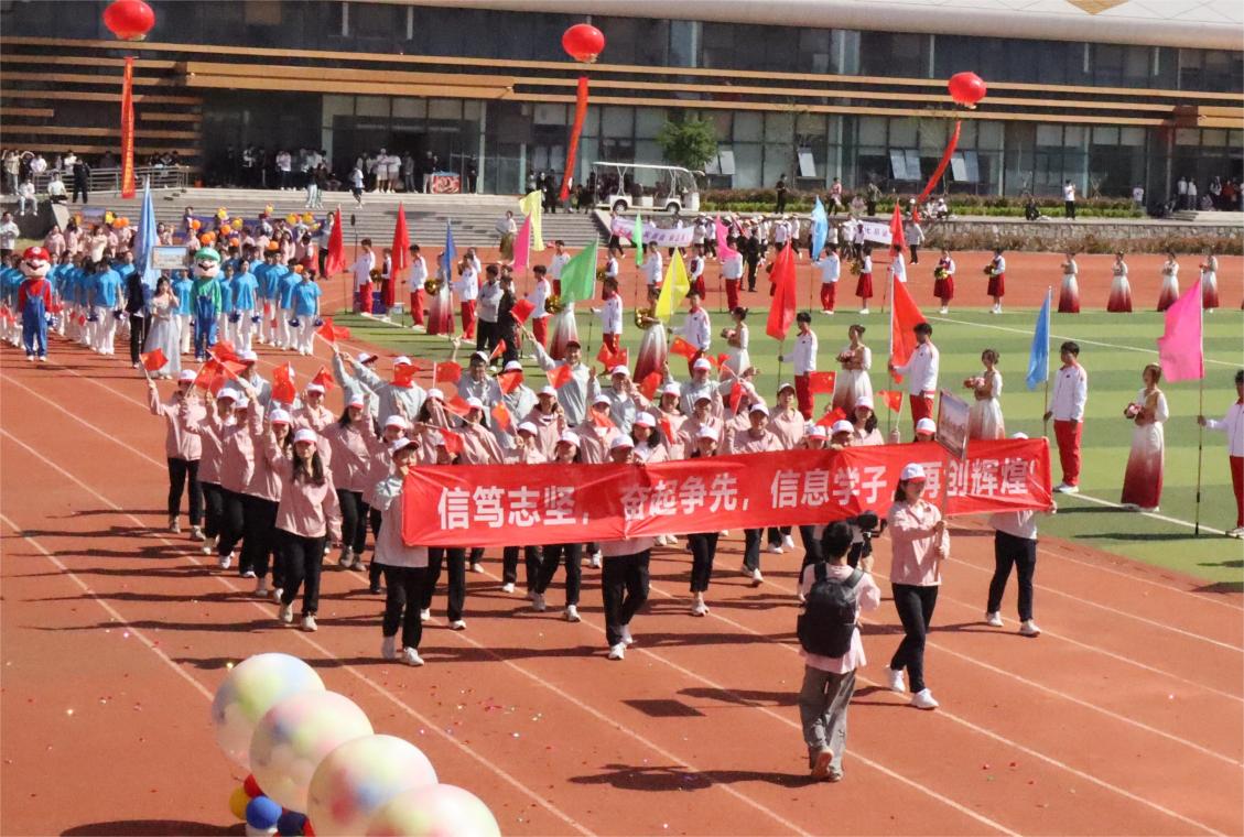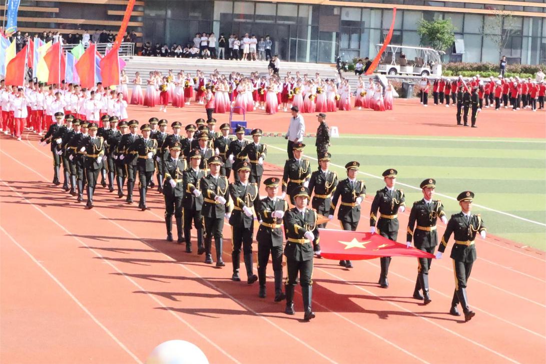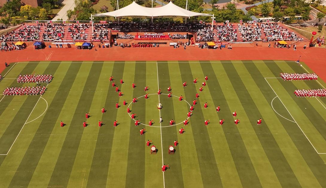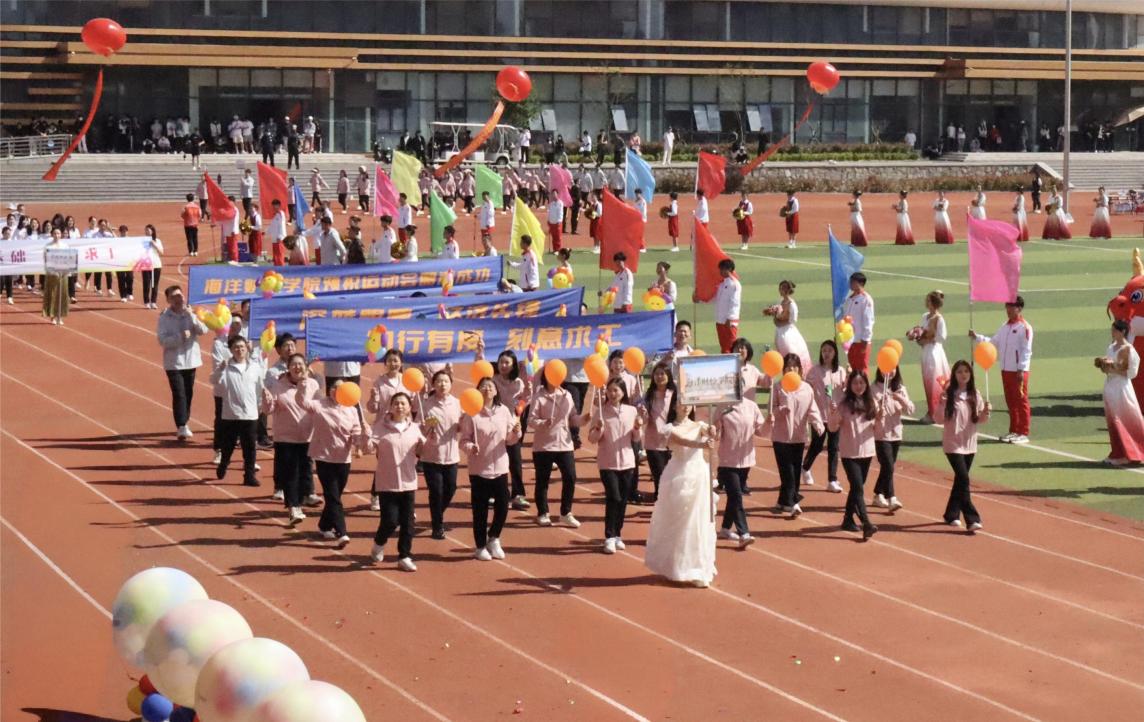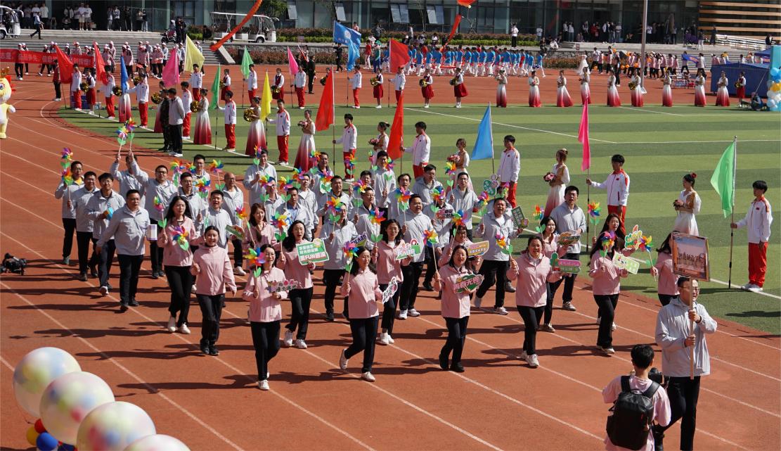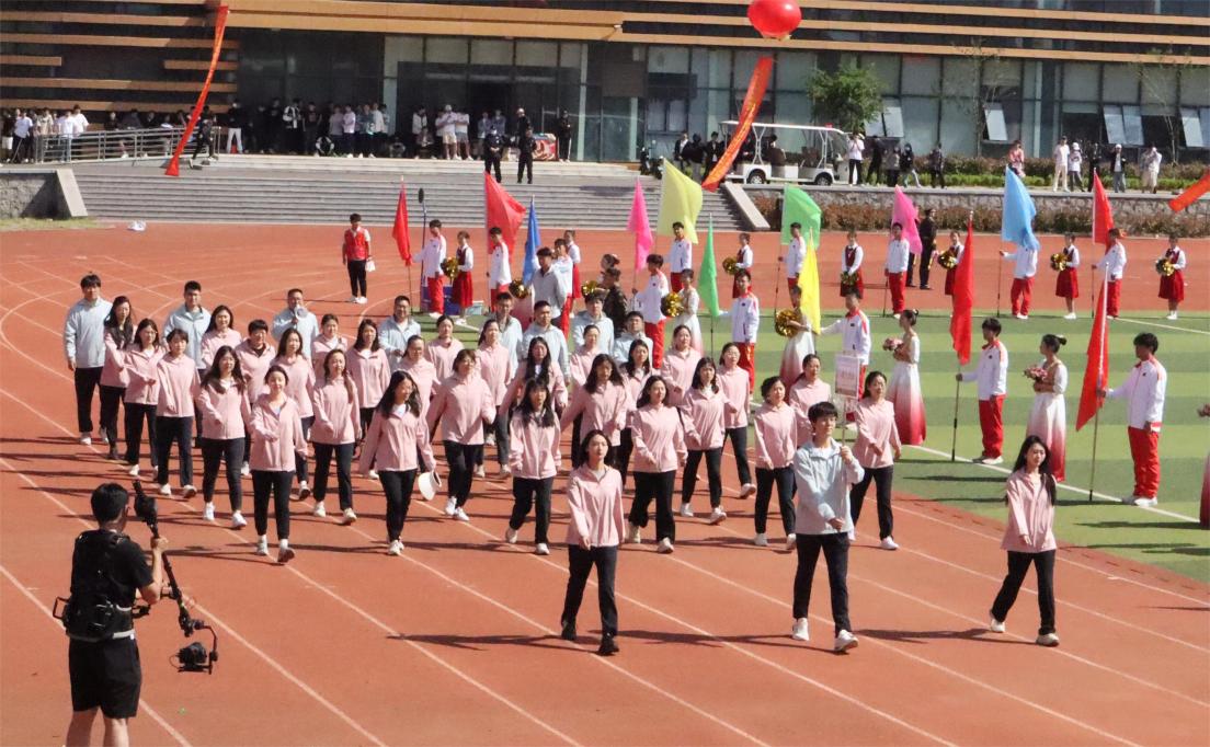 在开幕式入场式环节,无人机方队率先登场,一架架无人机在蓝天中划出优美的彩色弧线。随后,国旗护卫队、彩旗方队、花束方队、裁判员方队、机电工程学院方队、智能制造学院方队、信息工程学院方队、海洋财经学院方队、基础教研部教师方队、行政教师方队依次登场。每个方队的师生全部饱含热情,昂扬向前,尽展体育精神和运动风采。