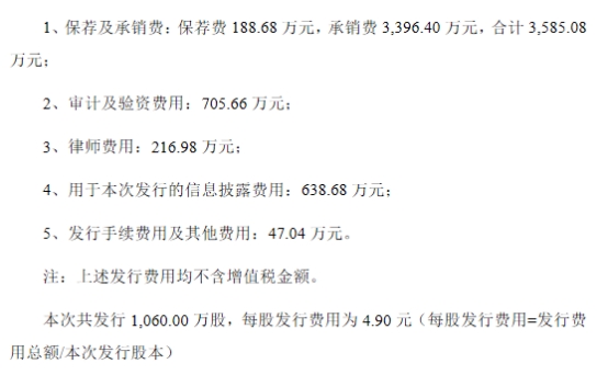 霍普股份本次上市发行费用为5193.44万元,其中保荐机构长江证券承销保荐有限公司获得保荐及承销费3585.08万元,北京金诚同达律师事务所获得律师费用216.98万元,立信会计师事务所(特殊普通合伙)获得审计及验资费用705.66万元。