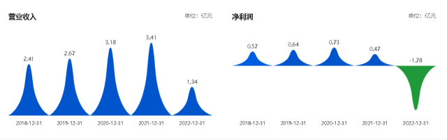 此外,霍普股份在上市后第二年营收出现断崖式下跌,并出现亏损。霍普股份发布的2022年年报显示,2022年公司实现营业收入1.34亿元,较上年同期下降60.75%,实现归属于上市公司股东的净利润-1.78亿元,较上年同期下降479.61%。