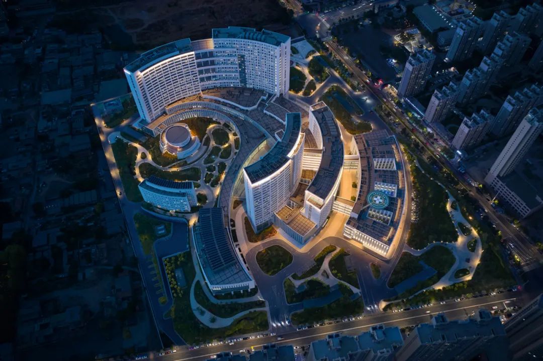 医疗建筑的功能性非常复杂,如何实现功能和形式的有机结合,是本项目设计中面临的最大的挑战。甘肃省中心医院由三所医院组成,项目建筑面积约39万平方米、设置床位2300张。霍普股份和SMITHGROUP合作,提出了以象征黄河的“川流”贯穿于整个建筑群体的设计概念。